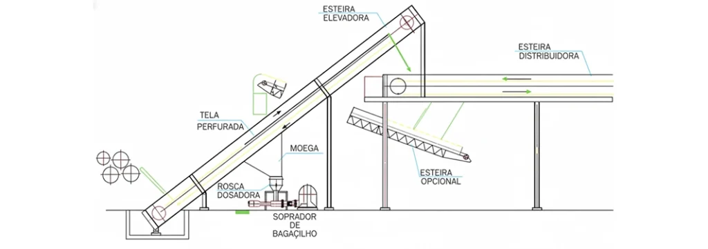 Embora existam sistemas digamos mais sofisticados para a separação de bagacilho, como por exemplo, peneiras rotativas ou vibratórias, a verdade é que na usina quase sempre é necessário uma esteira elevadora na saída da moenda para levar o bagaço até a esteira distribuidora de alimentação das caldeiras.